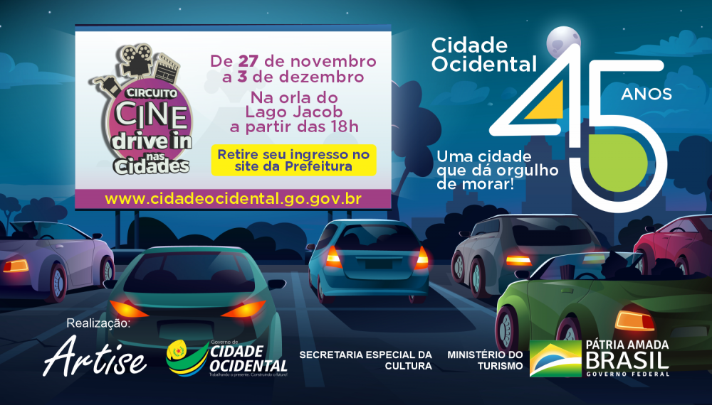 Pela primeira vez em Cidade Ocidental o Circuito Cine Drive In nas Cidades de 27 de novembro a 03 de dezembro.