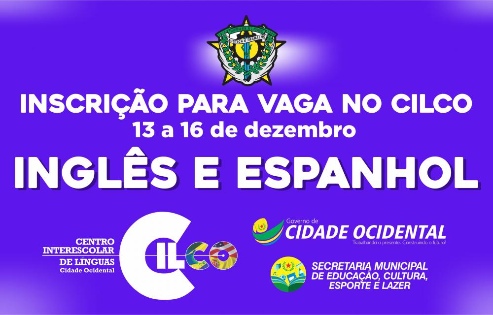 Estão aberta as inscrições para o curso de INGLÊS E ESPANHOL para o CILCO – CENTRO INTERESCOLAR DE LINGUAS DE CIDADE OCIDENTAL