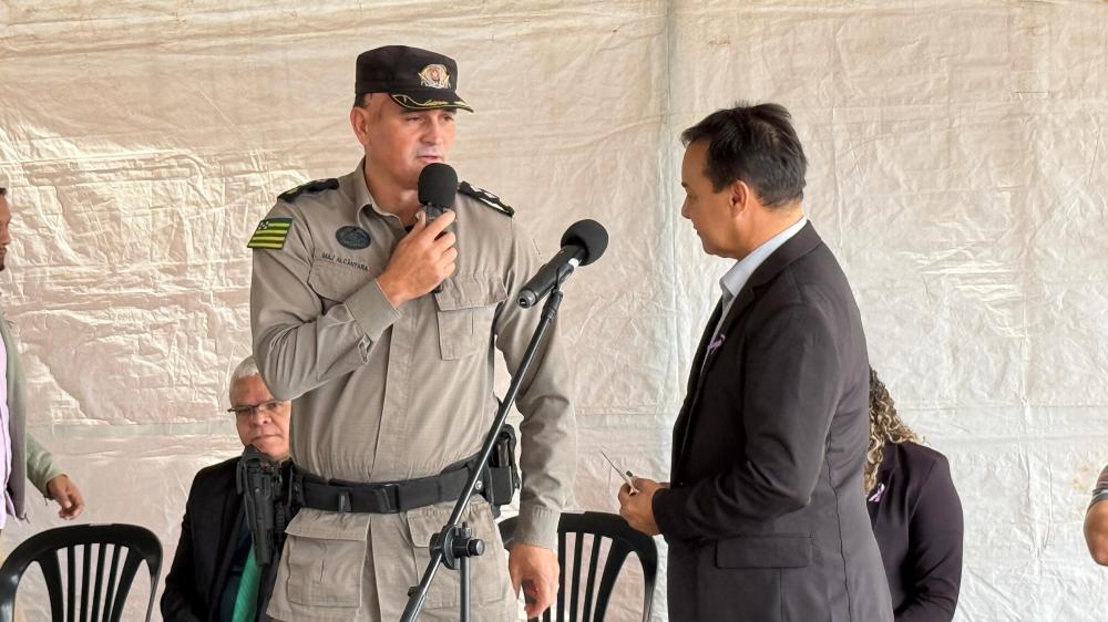 A convite do prefeito, o comandante do 33º Batalhão da Polícia Militar, major Alcântara, foi o primeiro a falar após o prefeito. Ele destacou a importância da retomada do banco de horas repassado pela prefeitura à corporação, medida que possibilitou a reativação de projetos relevantes como as patrulhas escolar, comercial e de condomínios. Mencionou também o Projeto Embarque Seguro, realizado em parceria com a Guarda Civil Municipal, e o reforço no policiamento ostensivo, iniciativas que têm proporcionado mais segurança à população por meio da atuação integrada entre Estado e Município.